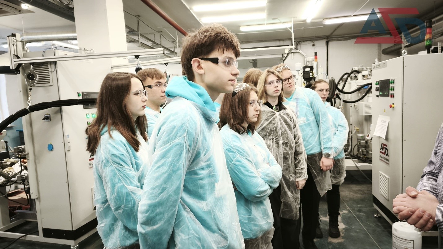 Во время мероприятия учащихся познакомили с производственными цехами, испытательной лабораторией и различными технологиями применения полимеров в отраслях промышленности.