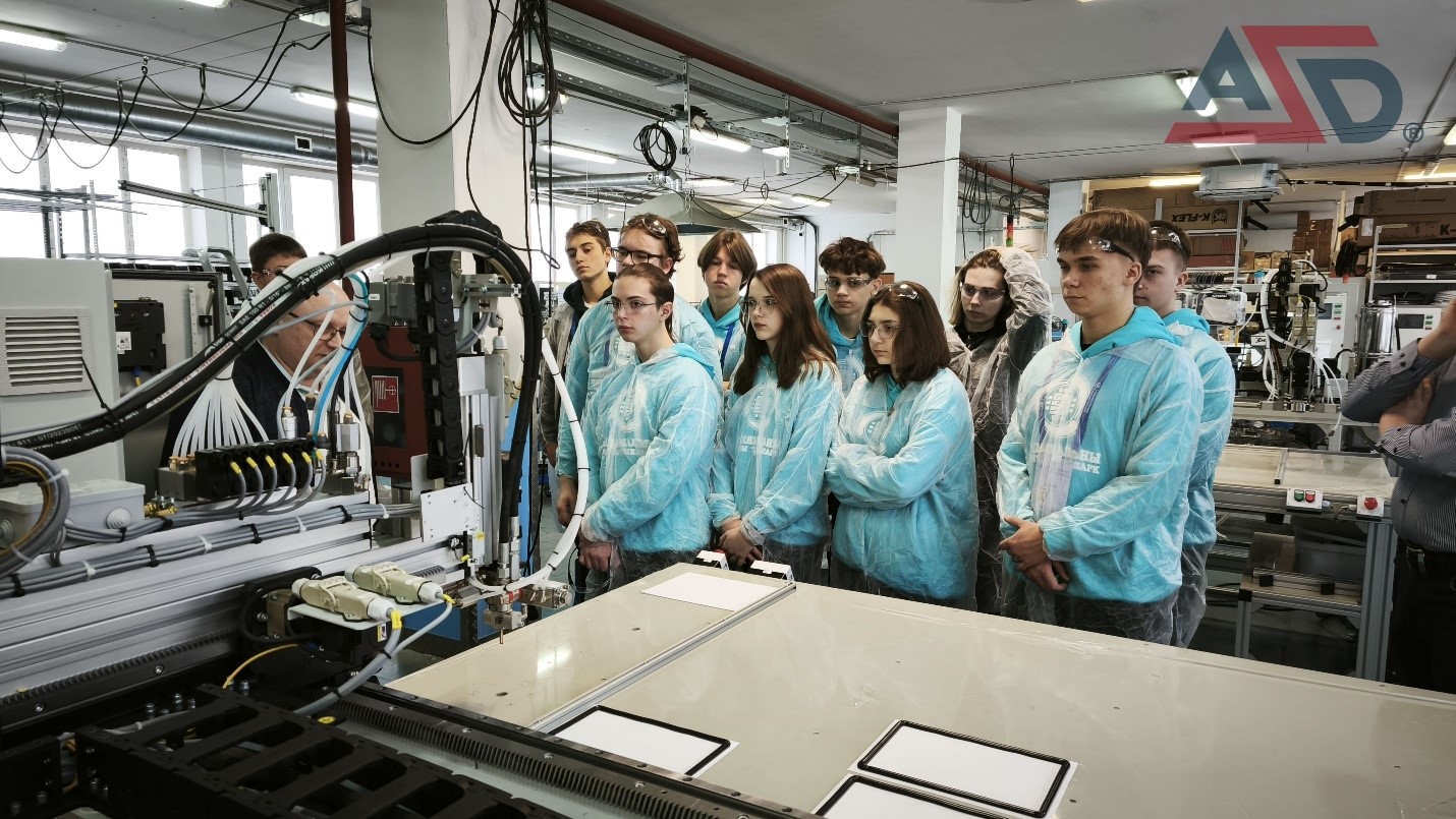 Целью мероприятия было ознакомление ребят с этапами и спецификой производства автоматизированного промышленного оборудования дозирования, приготовления и нанесения многокомпонентных полимерных составов на основе робототехнических комплексов.