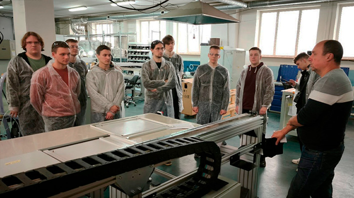 Во время экскурсии будущие инженеры в области машиностроения познакомились с этапами комплексной работы по созданию производственно-технологических участков на основе дозирующего оборудования, автоматизированных линий и робототехнических комплексов – от разработки конструкторской документации до запуска оборудования на территории производств заказчика.
