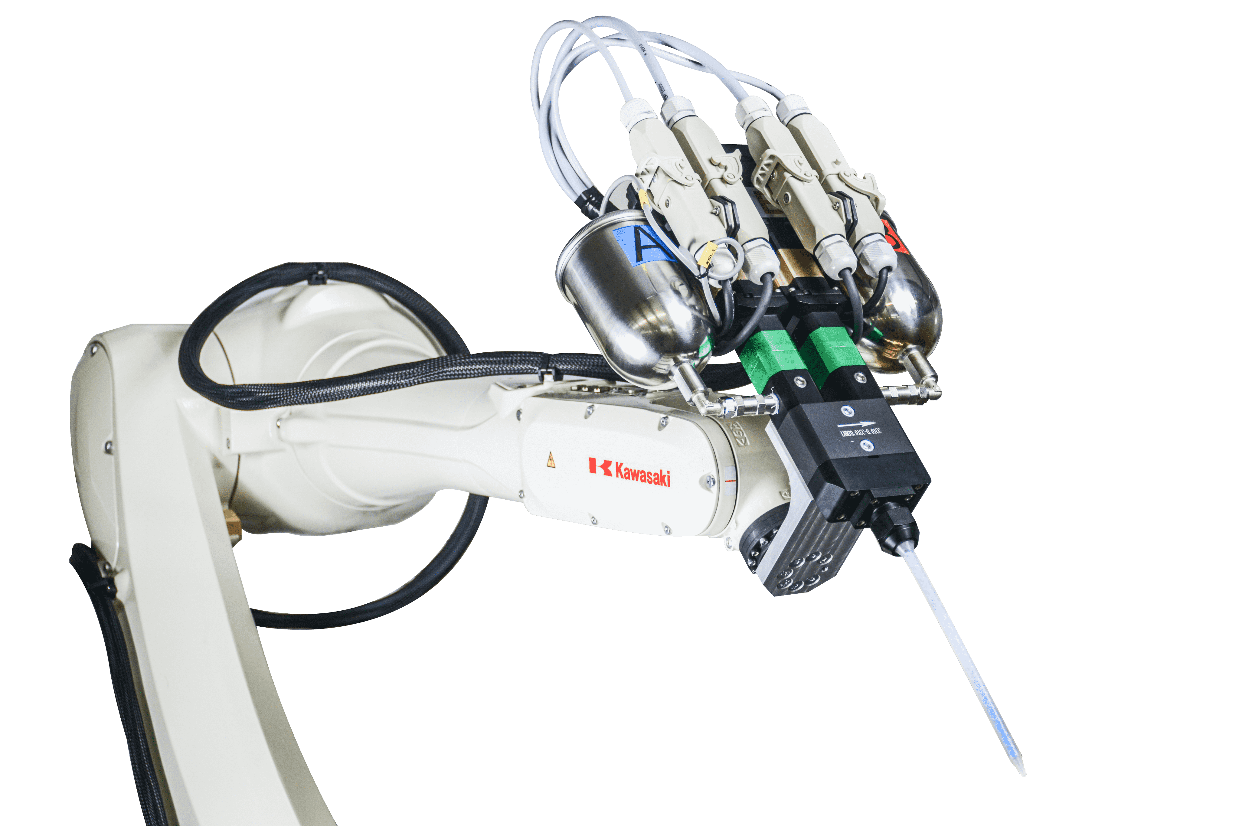 Узел дозирования оснащается специальным винтовым насосом или насосной парой для двухкомпонентных систем. Сервопривода с системой управления позволяют программировать и регулировать дозирование путем высокоточной регулировки оборотов ротора насоса.