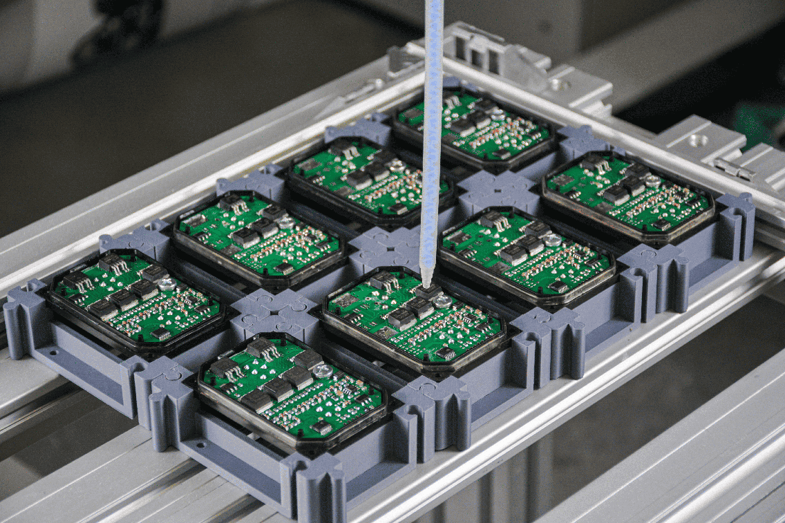 - предоставляет возможность автоматизированной герметизации компаундом или нанесения по программируемой траектории