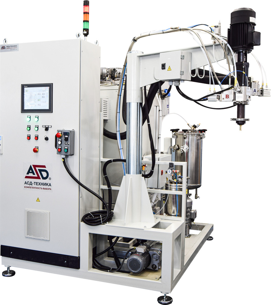 - Система дегазации компонентов с помощью вакуумного насоса.