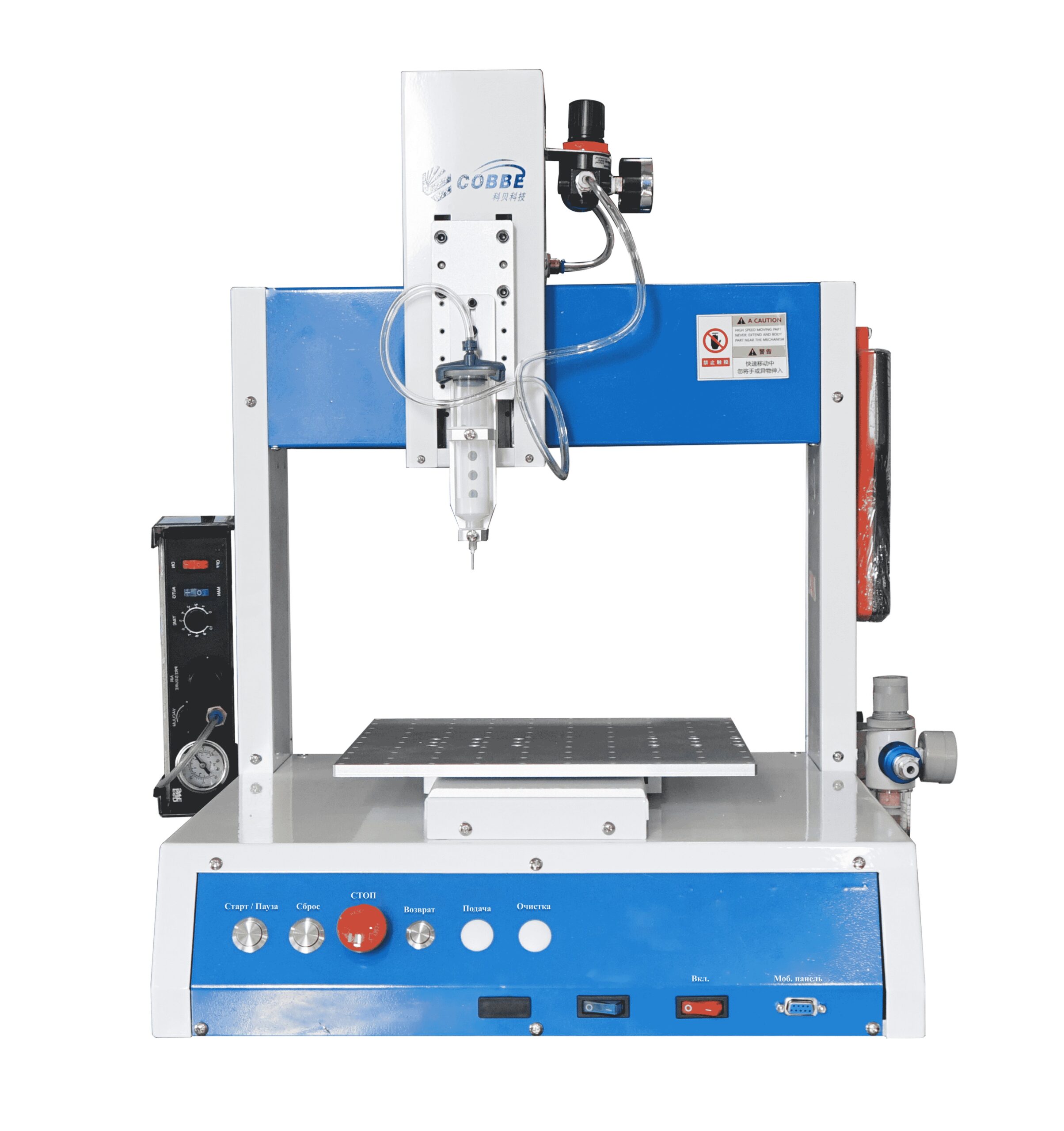 Настольный манипулятор для автоматического нанесения клея по программируемой траектории.