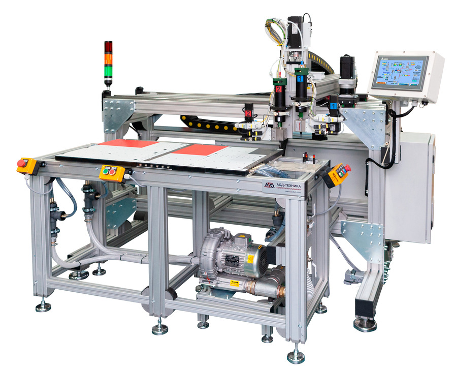 Координатный манипулятор и дозатор для герметика выполняют в комплексе технологические операции: